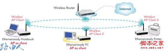 2、無線客戶端相當于帶有的無線網卡,可以接收無線路由或者無線AP發射出來的信號,并將它轉換為有線信號輸出,工作在Client模式下的設備是接收無線信號 是不會向外發射無線信號的。