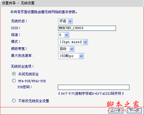 不修改無線安全設置:選擇該項,則無線安全選項中將保持上次設置的參數。如果從未更改過無線安全設置,則選擇該項后,將保持出廠默認設置關閉無線安全。
