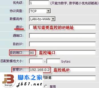 四、瀏覽網頁使用的是TCP/HTTP協議,端口為80,假設監控機的IP地址為192.168.0.2,進入路由主界面-防火墻-端口鏡像: