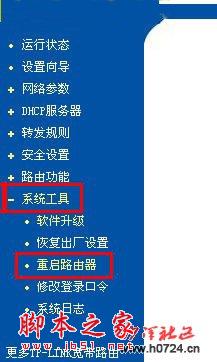 好了到了,這里路由器里的配置一切都設(shè)置好了,現(xiàn)在我們只有重起路由器就OK了.點(diǎn)系統(tǒng)工具,重起路由器,幾秒鐘后就好了,請(qǐng)看圖片13