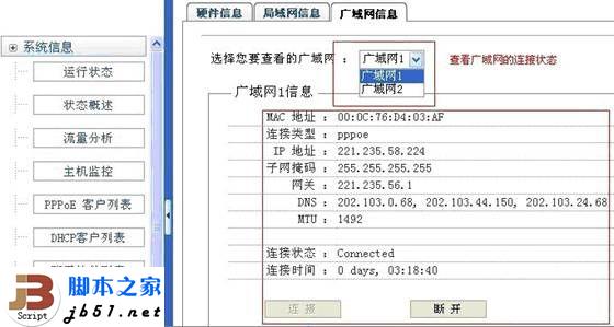 10、連接時間:表示該廣域網口與服務器建立連接的時間,以此時間可以判斷WAN口是否掉線過。