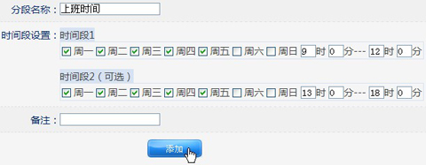 如上圖所示,設置一個上班的時間,勾選星期幾,具體時間,點擊添加即可。