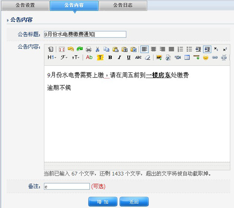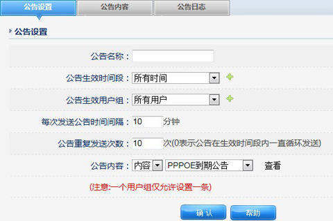 用于向內網發布通告信息,在指定時間段內通過網頁的形式告知內網用戶。
