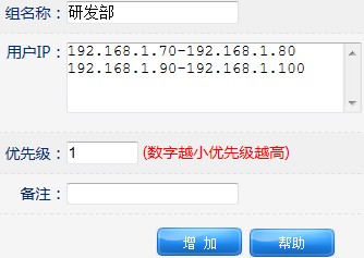 在這里填寫組名稱,以及IP范圍,優先級,備注,點擊增加即可。