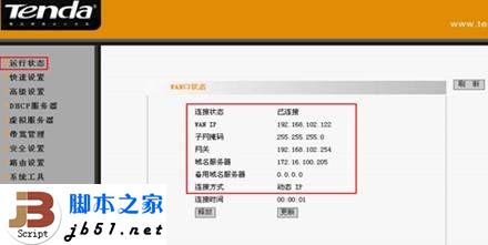 3、保存后點擊系統工具-重啟路由器,重啟后出現WAN口狀態頁面,如圖所示: