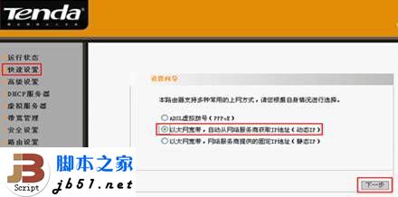 1、進入管理界面點擊快速設置-設置向導-選擇自動從網絡服務商獲取IP地址-下一步-保存,如圖所示: