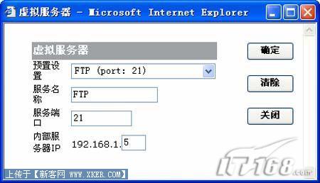 虛擬服務器:DMZ 主機實際上就是一個缺省的虛擬服務器,假如設備收到一個來自外部網絡的連接請求,它首先查找虛擬服務列表,假如有匹配的表項,就把請求消息發送到對應的虛擬服務器上去。WBR204g 最多可設置 10 個虛擬服務器。