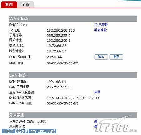 狀態記錄選項:該選項包括路由器工作狀態顯示,以及日志兩個方面。日志信息,記錄了路由器運行期間發生的諸如用戶登錄,修改密碼等操作。