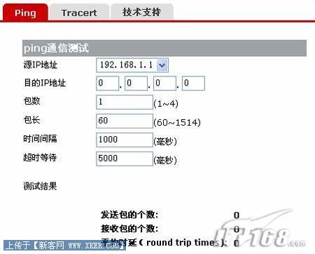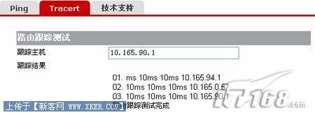 路由跟蹤功能:Trace Route(路由跟蹤)功能用來測試路由器到某主機(包括網絡設備)所經過的各設備之間的連接是否正常。用戶輸入一個IP地址就可以進行測試了。