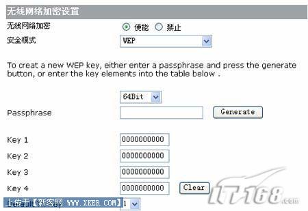 加密設置:無線網絡加密設置可以對無線網絡進行加密,防止非法入侵。WBR-204g無線路由器提供了 “WEP”、“WPA Pre-Shared Key”或“WPA RADIUS”三種加密模式。下面,我們以最常用的WEP加密模式為例,介紹一下如何對無線信號進行加密。