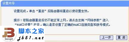 5、完成設(shè)置。提示重啟路由器,點擊重啟,如下圖所示。