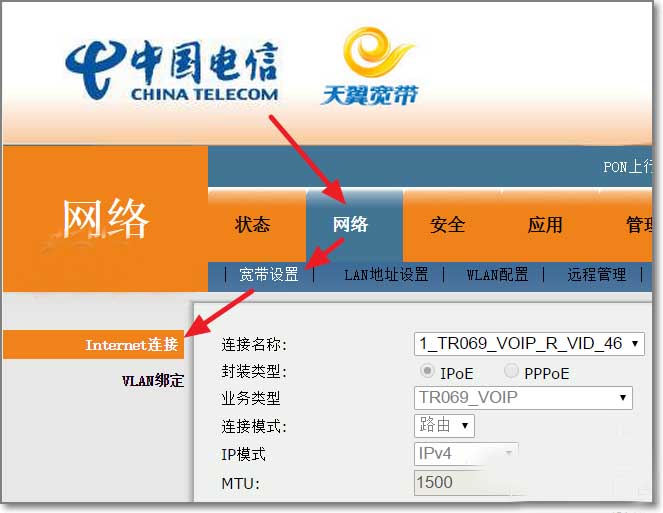 2、點擊菜單欄上的網絡,進入寬帶設置-Internet連接設置界面。