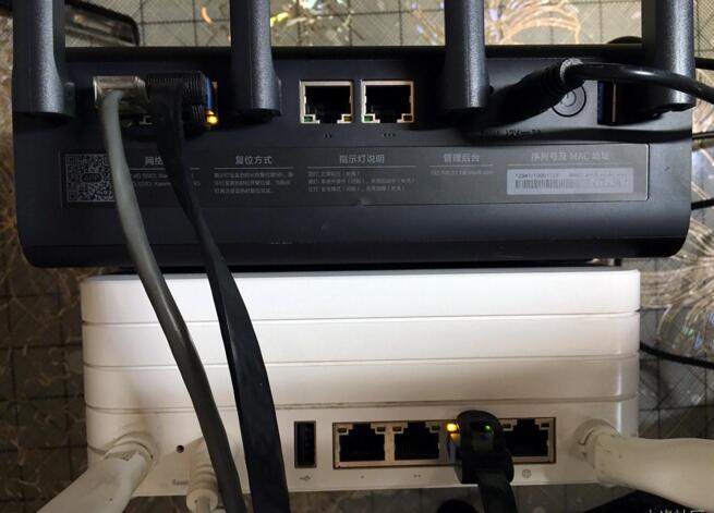 (如上圖所示,用網線分別連接兩部小米路由器并將小米路由器HD連接互聯網)