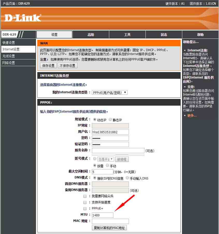 4、打開后就可以看到MTU值,默認(rèn)是1492,最后保存設(shè)置。