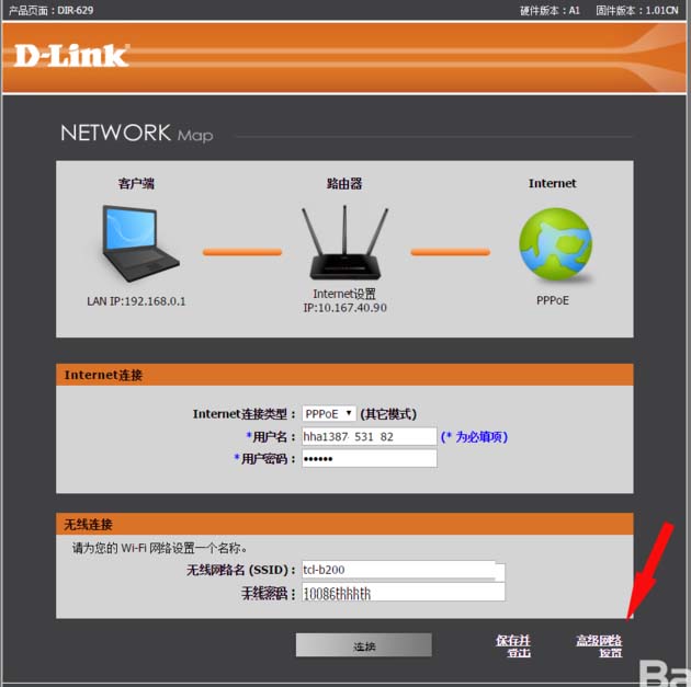 2、登陸管理界面以后點(diǎn)擊右側(cè)有個(gè)高級(jí)網(wǎng)絡(luò)設(shè)置,進(jìn)入Internet設(shè)置頁(yè)面。