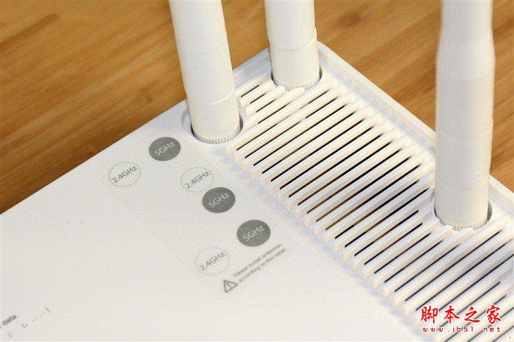 這款A6004NS無線路由器機身設計的散熱孔較多,除了正面天線周圍的散熱孔外,在背面也分布有比較密集的散熱孔,而且呈現交錯型分布,不僅實用而且美觀,在長時間使用路由器時能夠起到很好的散熱效果。在筆者實際使用一段時間后,在路由器的正面和底部都有輕微的發熱情況,不過并不影響正常使用。