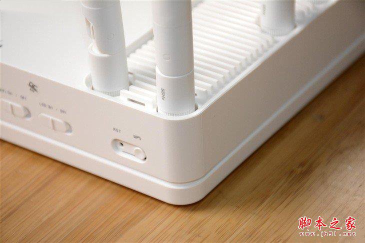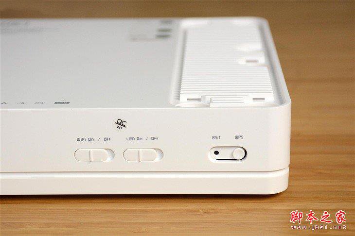 在A6004NS無線路由器的正面,從左至右依次分布著路由器的WiFi開關、LED開關,以及路由器的RST和WPS鍵。其中LED 信號燈開關可以說是一個比較人性化的設計,能夠一鍵關閉路由器上的全部LED信號燈,這樣用戶即使將路由器放置在臥室內也不會影響夜間的睡眠,非常貼心。