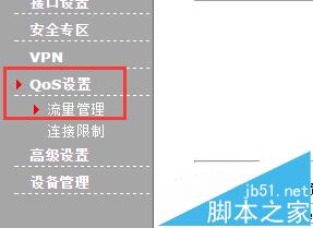 3、待進(jìn)入H3C路由器后臺(tái)Web界面后,切換到“Qos設(shè)置”-“流量管理”選項(xiàng)卡,如圖所示: