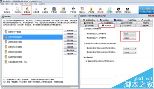 9、接下來(lái)就需要?jiǎng)?chuàng)建具體的限速策略:直接點(diǎn)擊“策略配置”按鈕,即可根據(jù)實(shí)際需要選擇編輯現(xiàn)有策略或創(chuàng)建新策略,并設(shè)置“寬帶限速”參數(shù)。如圖所示: