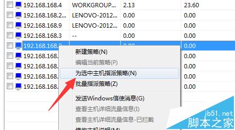 10、限速策略編輯完成后,在計(jì)算機(jī)列表界面中,右擊對(duì)應(yīng)的計(jì)算機(jī),從其右鍵菜單中選擇“為選中主機(jī)指派策略”項(xiàng)。