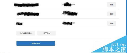 4、之后有從在線列表添加和手工添加,在線添加就是現在連接著wifi的mac,手工添加的話就比較麻煩,先要在手機上找到mac地址,在手工添加