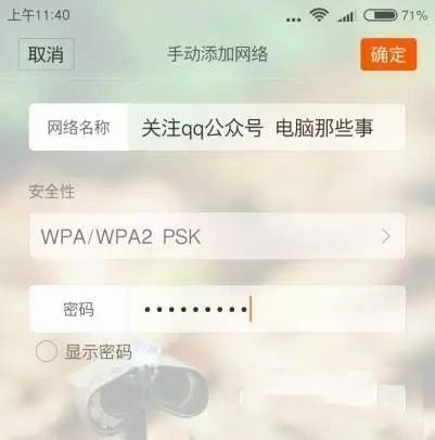 七、手機端的連接也很簡單打開設置里的 WLAN 點擊其他 依次輸入網絡名 安全類型和密碼點確定即可,如圖。