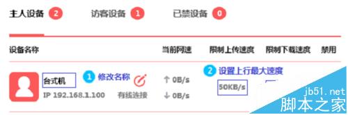 點擊被限速設備后面的修改按鈕,然后設置“限制上傳速度”、“限制下載速度”即可。