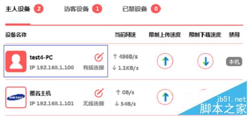 在V10-V15版本MW300R路由器的設置頁面,點擊“常用設置”——>“連接設備管理”——>“主人設備”,然后找到需要被限速的設備。