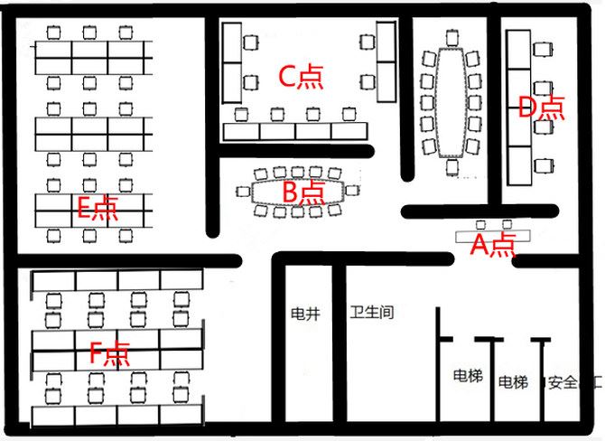 我們在公司內(nèi)部安排了ABCDEF幾個測試點,其中A點為H3C X3至尊版無線路由器能放置點,接下來就開始我們的相關(guān)測試。