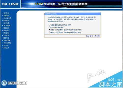 4、點擊左邊功能菜單“設置向導”>選擇“動態IP”點擊下一步;