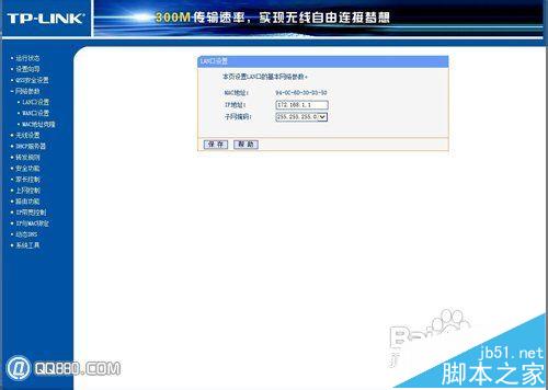 7、在重啟完成后,再次登錄到路由器管理,點網絡參數>LAN口設置>輸入IP地址:172.168.1.1,保存。就是將原來的192.168.1.1更改成新的網段,因為電信光貓用的就是這個網段,路由器不能與光貓相同。