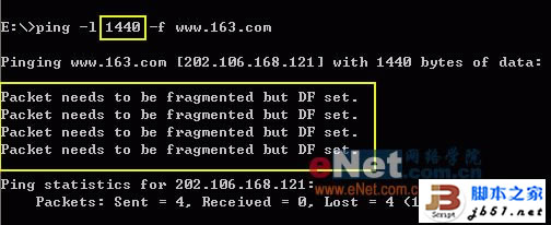 * –l 14xx參數:發送一個定長數據包,14xx是要測試的包大小,如前所述,ADSL的MTU一般在1450與1492之間,第3步中將每次更換一次該值