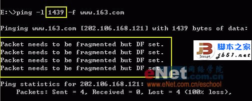 如圖6,數據包大小升為1439,提示因數據包過大無法傳輸,因此,判斷出該ISP的MTU值為1438