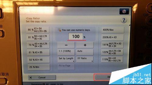 8、設(shè)置復(fù)印比例為100%:點擊 1:1 (100%)。比例調(diào)整后,點擊OK。