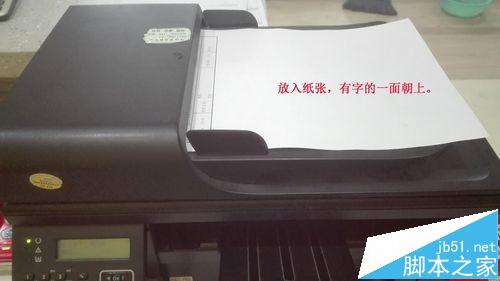 2、然后把需要發的傳真頁放到接觸版面上,這里最新打印機發傳真的話有內容的一面朝上放。