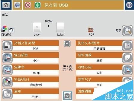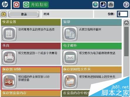 4、從產品控制面板的主屏幕中,滾動至并輕觸保存到 USB 按鈕。