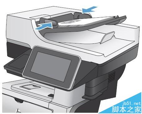 2、將文檔正面朝下放到掃描儀玻璃板上,或將其正面朝上放到文檔進紙器中,然后調整紙張導板使其適合文檔的尺寸。