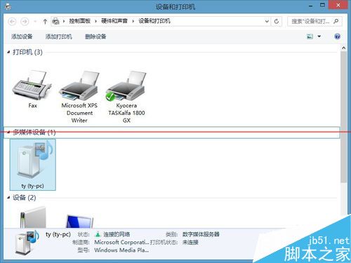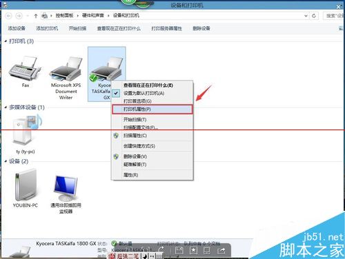 2、在Kyocera TASKalfa 1800 GX打印機圖標上右擊,選擇“打印機屬性”