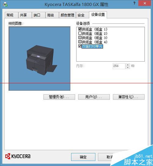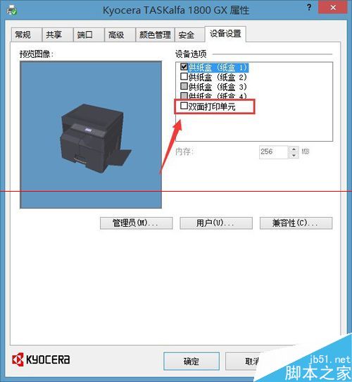 最近單位買了一臺京瓷Kyocera TASKalfa 1800 GX,安裝完成后,想進行雙面打印,卻發(fā)現(xiàn)無法打印,經(jīng)過一番研究,終于實現(xiàn)了雙面打印.