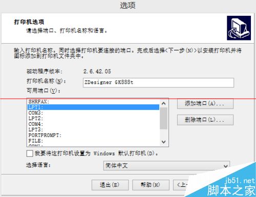 5、端口這里要選擇usb001,如果沒有,可以先不選。語言選擇簡體中文。點擊“下一步”