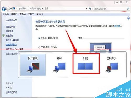 5、現(xiàn)在如果你想在你的電腦上面操作,其他人看投影儀,那么我們就可以選擇“復(fù)制”也就是第二個(gè)。