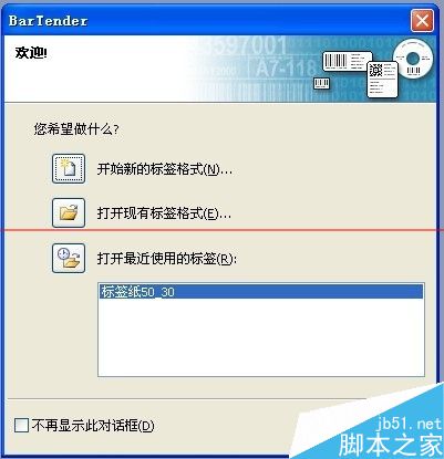 選擇你所需要的標(biāo)簽格式,對(duì)于第一次打開此軟件進(jìn)行編輯,都是選擇【開始新的標(biāo)簽格式】。如事先有開過(guò),如文本框中顯示的50_30標(biāo)簽紙,直接選擇【打開最近使用的標(biāo)簽】。