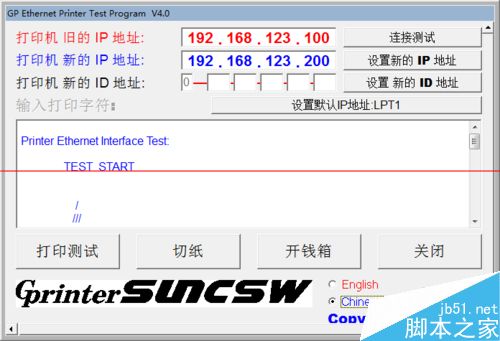 第一行紅色行輸入打印機IP地址:192.168.123.100,點連接測試,如返回False表示不通請檢查網路或重啟打印機,如返回Successful表示通,則可修改打印機IP地址了。