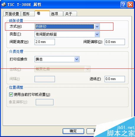 5、在卷的選項中把方式改為熱轉印,然后確定打印。