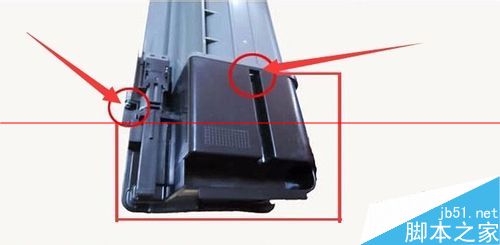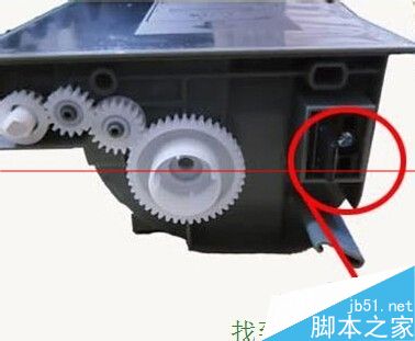 4、好了,閑話休說,下面我們就一起來加碳粉。將碳粉盒翻過來,找到紅圈中的兩個螺絲,用螺絲刀打開它們,將廢粉盒與粉盒分開來,長的那個是粉盒,短的那個是廢粉盒。好圖所示: