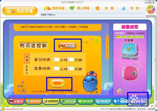 3、進入寶貝云連接器設置選項,滑動頁面滾動條到”防沉迷控制“畫面。