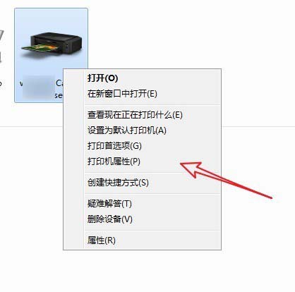 2、右擊打印機圖標,打開【打印機屬性】