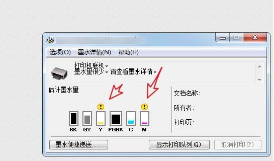 6、點擊圖表,彈出詳細的墨水情況說明,另幾個顏色是快要換的。