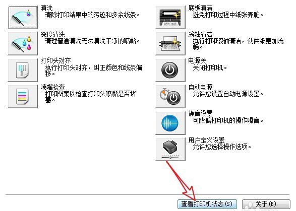4、在維護界面,點擊【查看打印機狀態】按鈕。