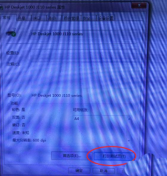4、裝好墨盒之后,最好打開控制面板,打印機,找到打印機,右鍵點擊屬性,選擇打印測試頁,看是否能正常打印。如果能夠正常打印,說明墨盒就已經安裝成功。